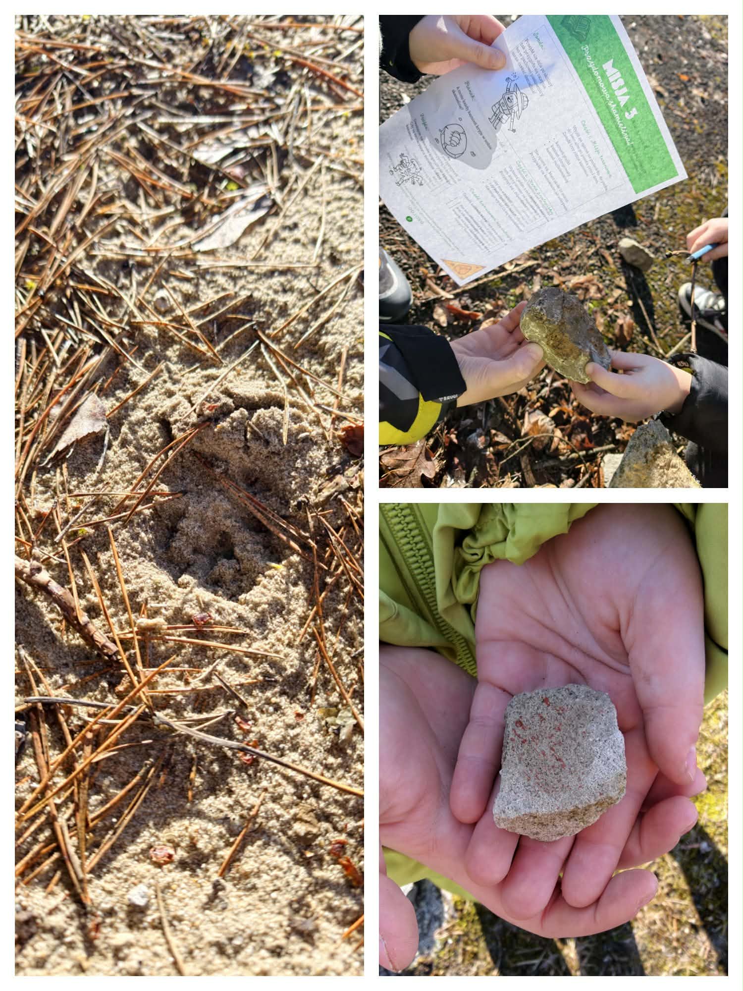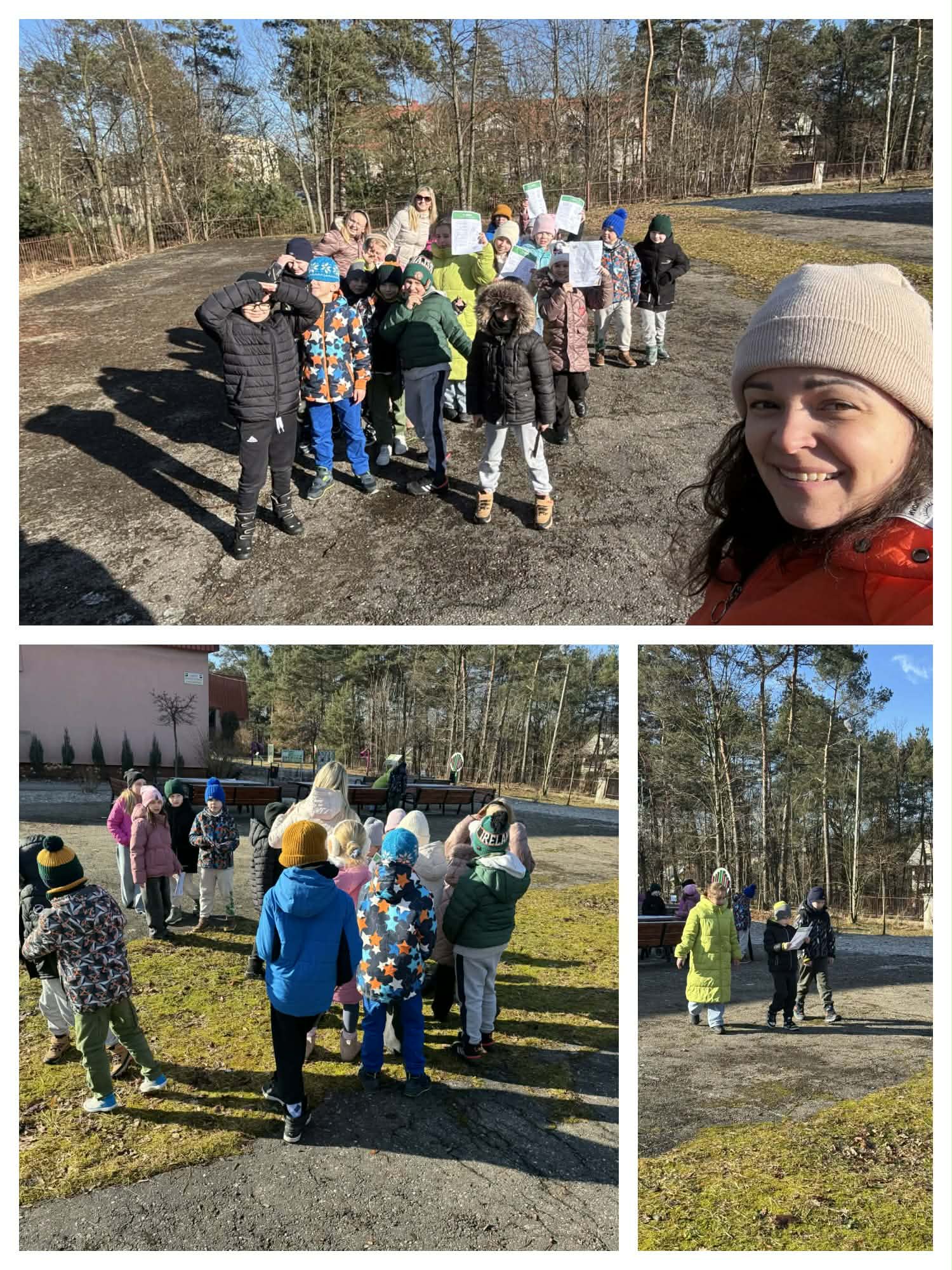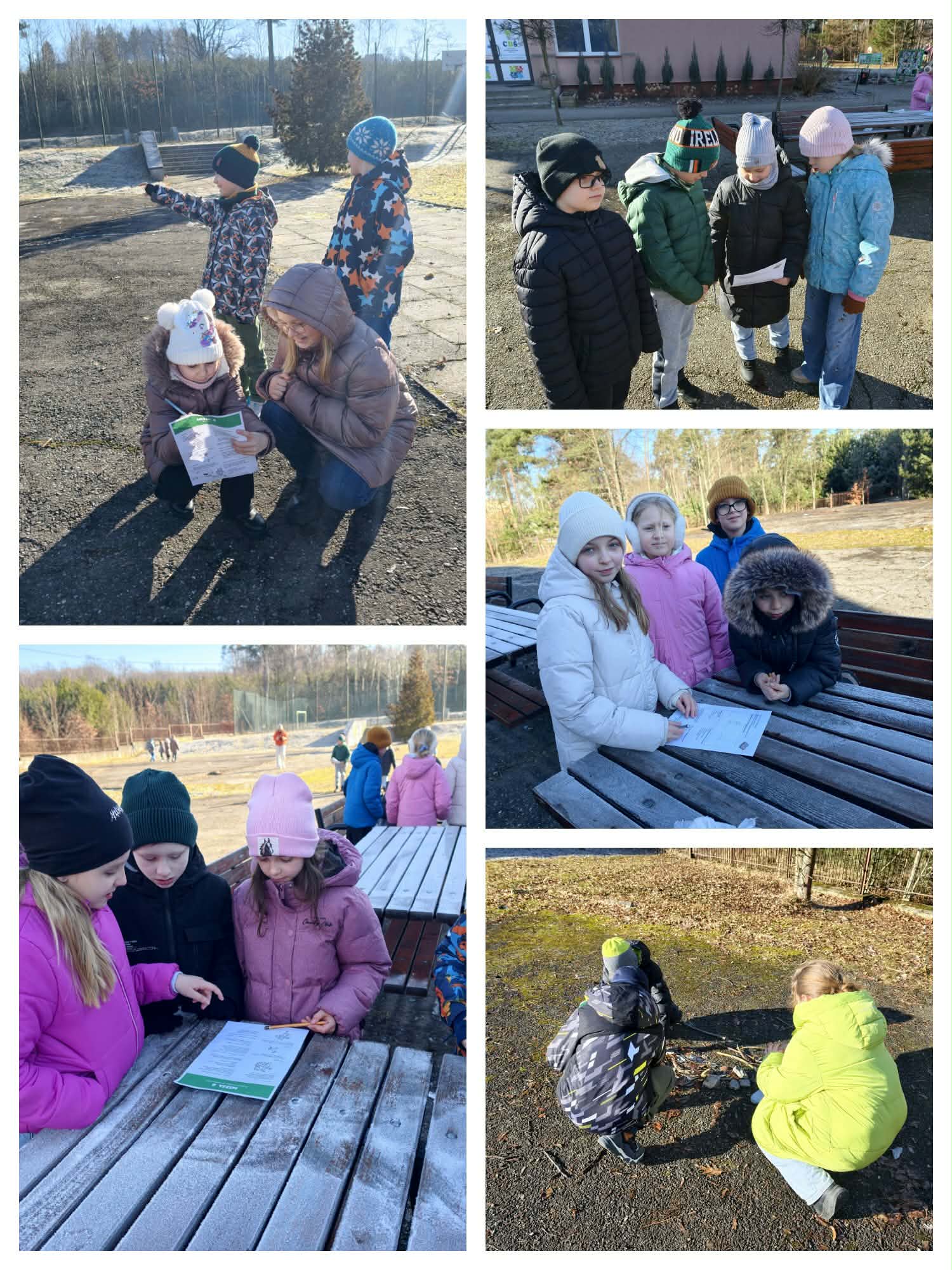 Następnie mali paleontolodzy wzięli udział w Dinomisji. Uczniowie podzieleni na grupy wykonali zadania w oparciu o e-book „DINOFERIE z Frankiem i Frajdą!”. Była to okazja do obserwowania przyrody, pogody, ruchu, do poszukiwań tropów zwierząt, skamieniałości, a także zaplanowania ucieczki przed… T-Rexem. Pogoda sprzyjała badaniom prowadzonym wokół szkoły.